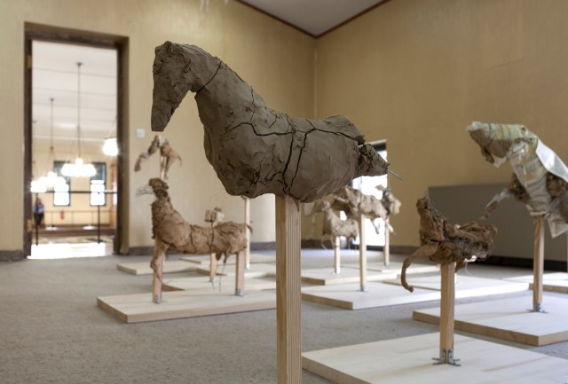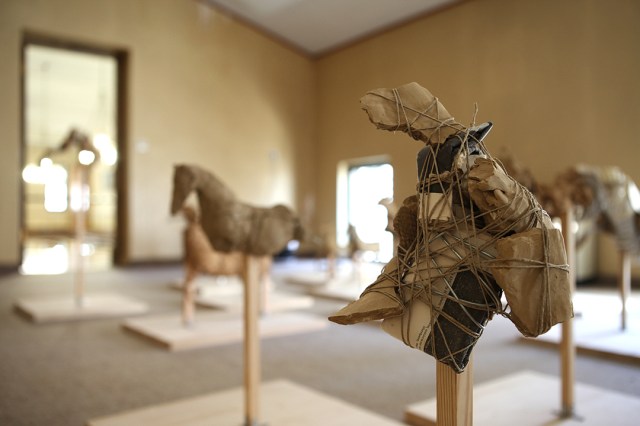Clay, wood, wire, twine, book pages, fabric, tape