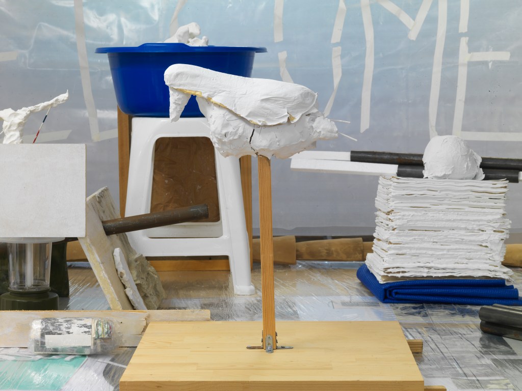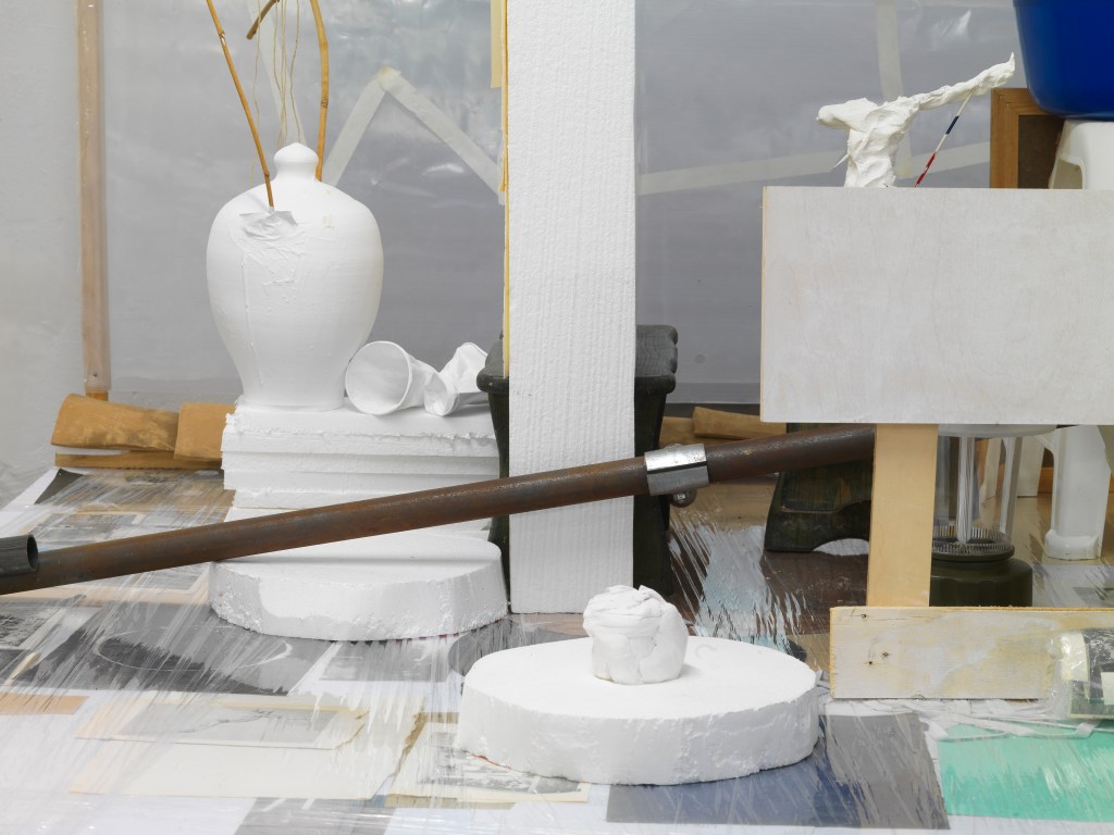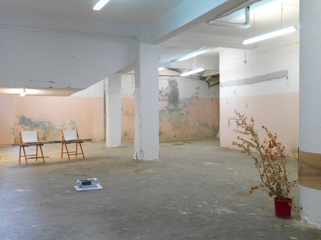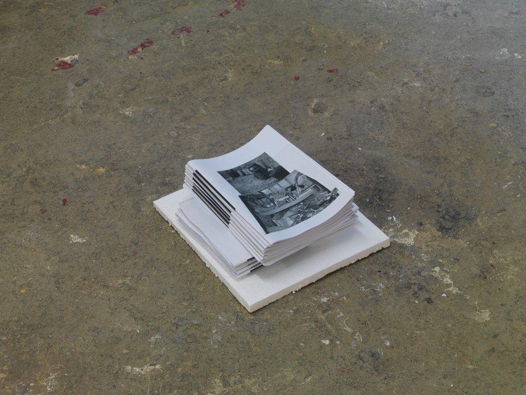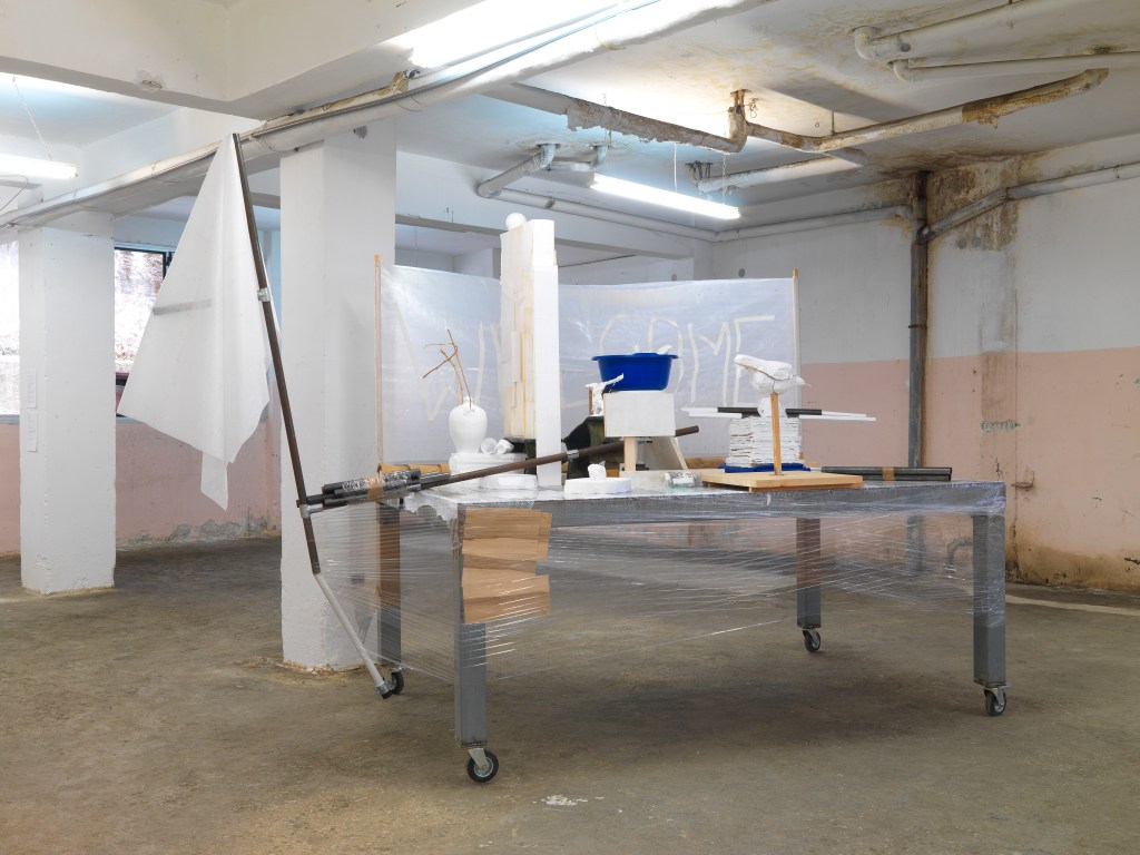 The exhibition space becomes a pseudo-historical space, a pseudo-memorial site where the audience is invited to consume. This work was constructed from materials that were either accidentally found at the exhibition area (studio of other artist) or moved from my studio mainly as repurposed elements of earlier works. The white acrylic paint along with a fanzine and a wall text by artist Kosmas Nikolaou, written especially for the exhibition, were the only new elements of the show.
